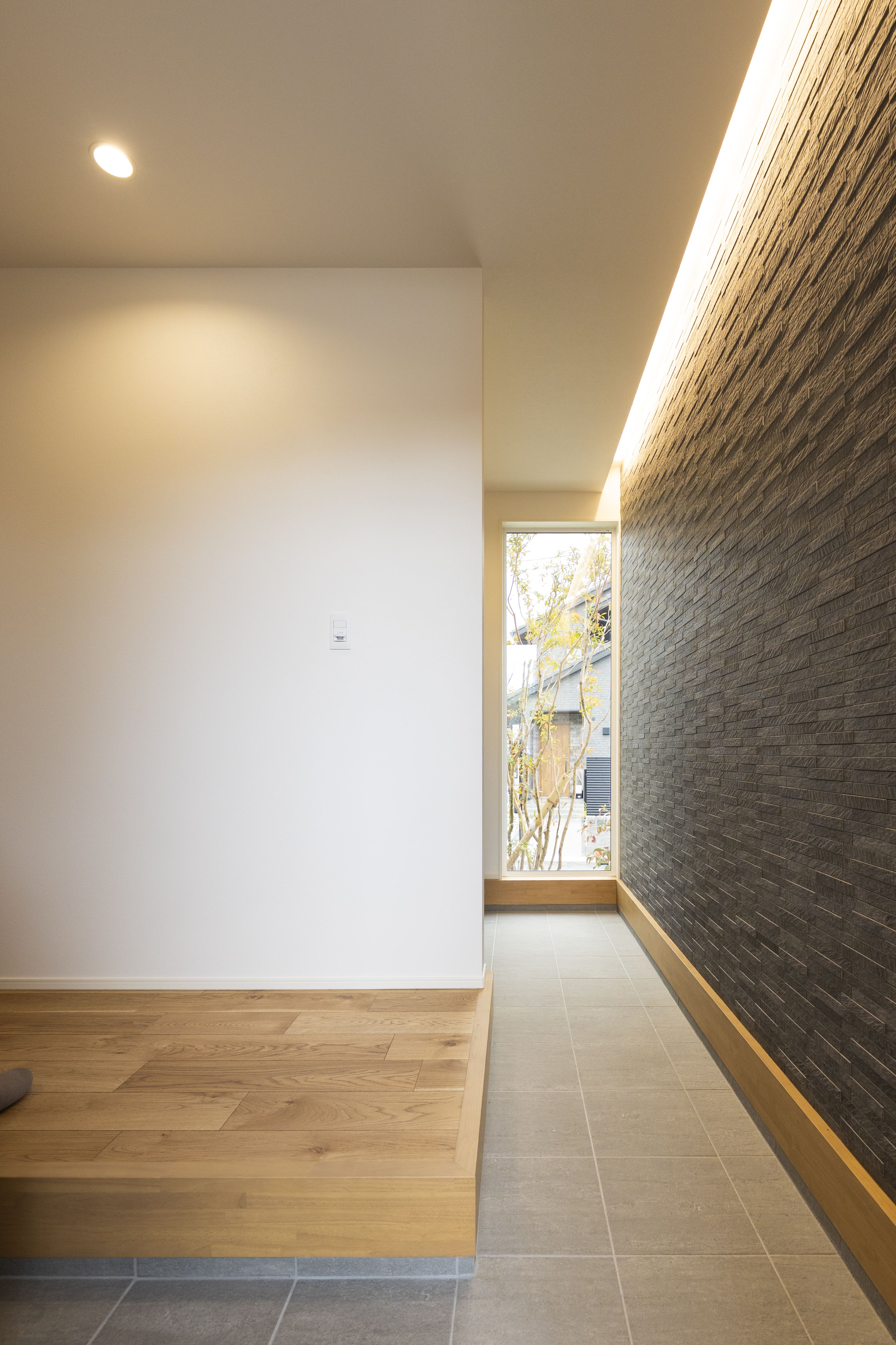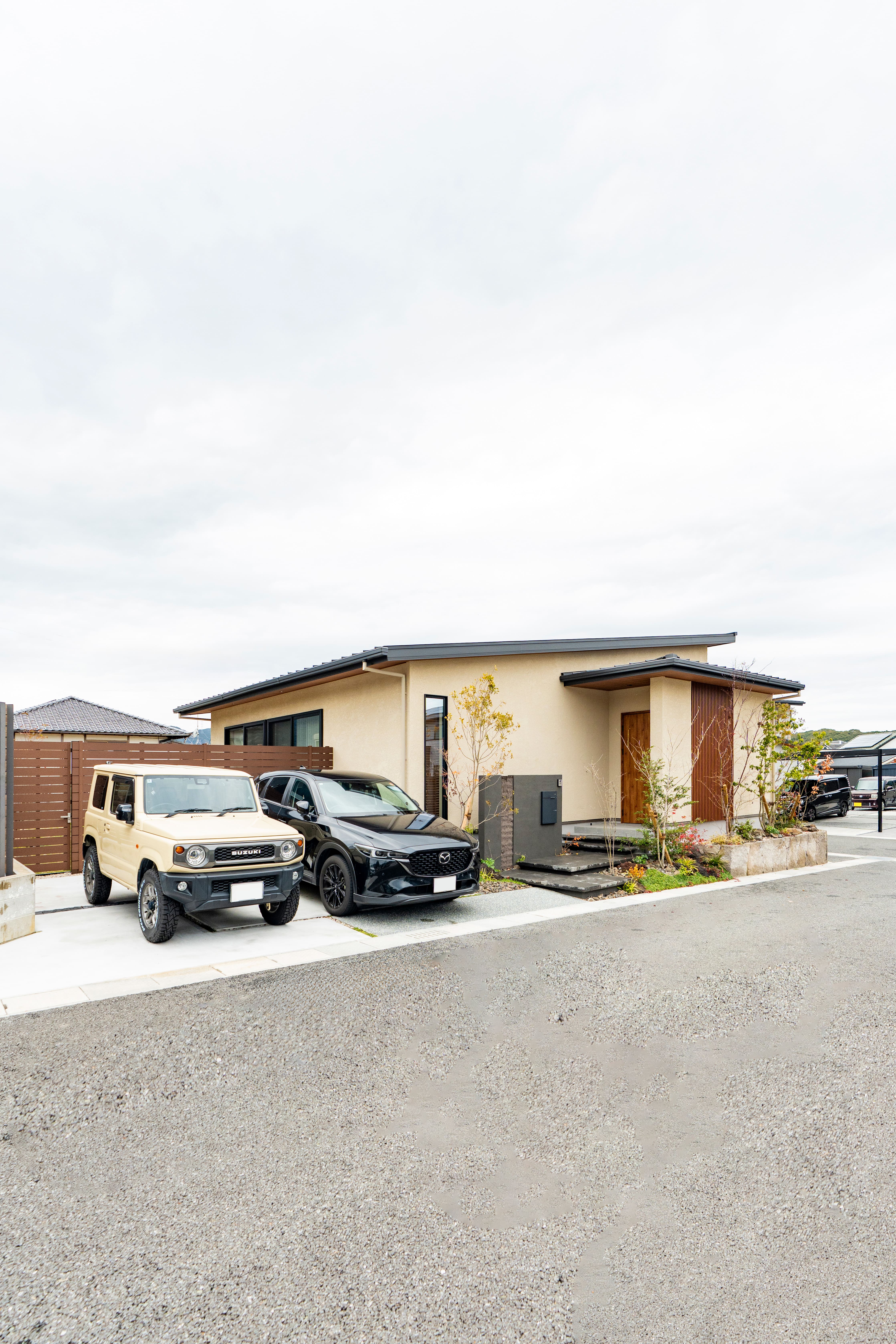 木目を活かした和風なデザインを希望していたT様ご夫婦。「以前住んでいた賃貸がメゾネットタイプで2階にリビングがあり、毎日上り下りするのが大変だったので平屋がいいと決めていました」というT様を訪ねると、まず驚くのが玄関の開放感。ドアを開けた真正面にある大きなガラス窓により気持ちの良い抜け感がある。さらに驚くのが、リビングに入った途端に目に入るズラリと並んだ4枚の大きな窓だ。ここまでのサイズの窓がある、ゆったりと広いリビングを実現できたのは、ライフデザイン・カバヤがオリジナル開発したCLTハイブリッド構法の戸建て住宅商品『CLT MASTERS』だからこそだという。「CLTのことは知らなかったのですが、営業さんからCLTであればこの部屋の幅や、大きな窓にできるというご提案をいただき、良いなと思って決めました」とご主人。高い耐震性と空間設計の自由度を兼ね備えた商品で、断熱等級6という高断熱性能もリビングの心地よさに一役買っているという。「冬なのに室内が暖かいんです。半袖で過ごすこともあるくらいですよ」と奥様が笑う。
